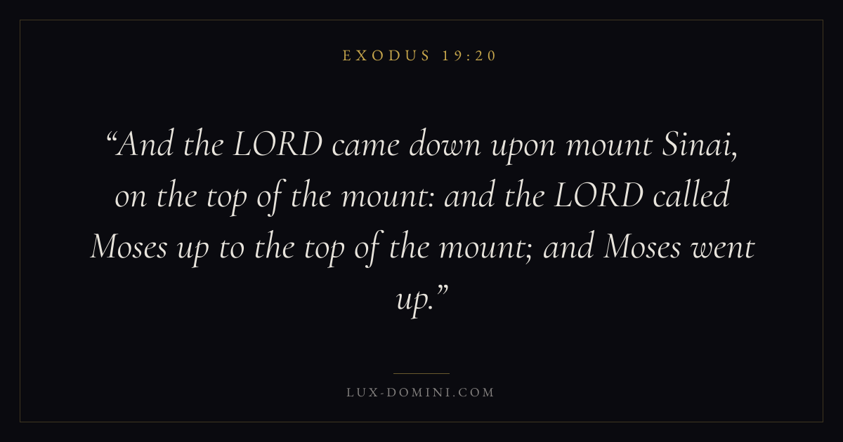 And the LORD came down upon mount Sinai, on the top of the mount: and the LORD called Moses up to the top of the mount; and Moses went up.