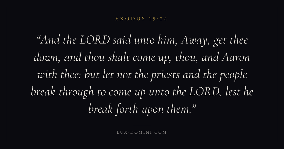 And the LORD said unto him, Away, get thee down, and thou shalt come up, thou, and Aaron with thee: but let not the priests and the people break through to come up unto the LORD, lest he break forth upon them.