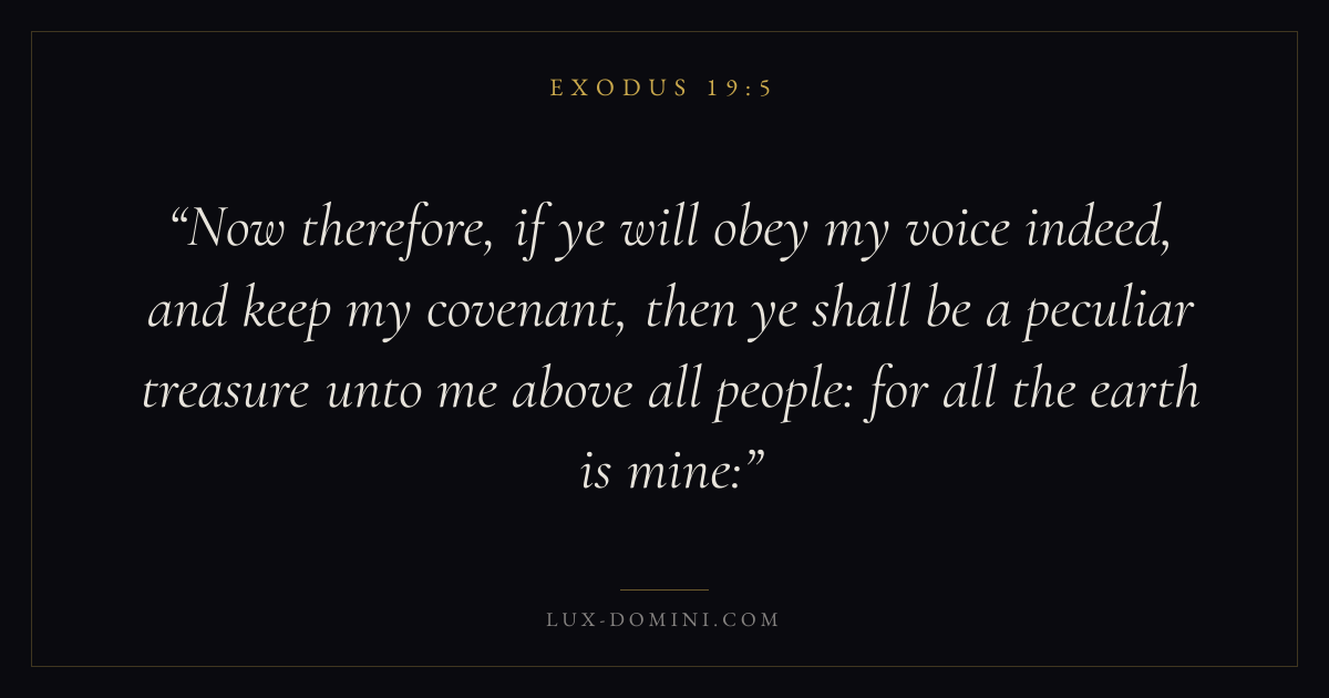 Now therefore, if ye will obey my voice indeed, and keep my covenant, then ye shall be a peculiar treasure unto me above all people: for all the earth is mine: