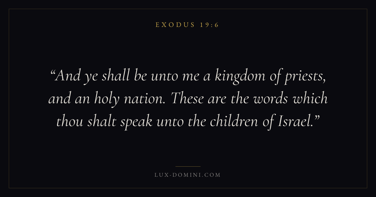 And ye shall be unto me a kingdom of priests, and an holy nation. These are the words which thou shalt speak unto the children of Israel.