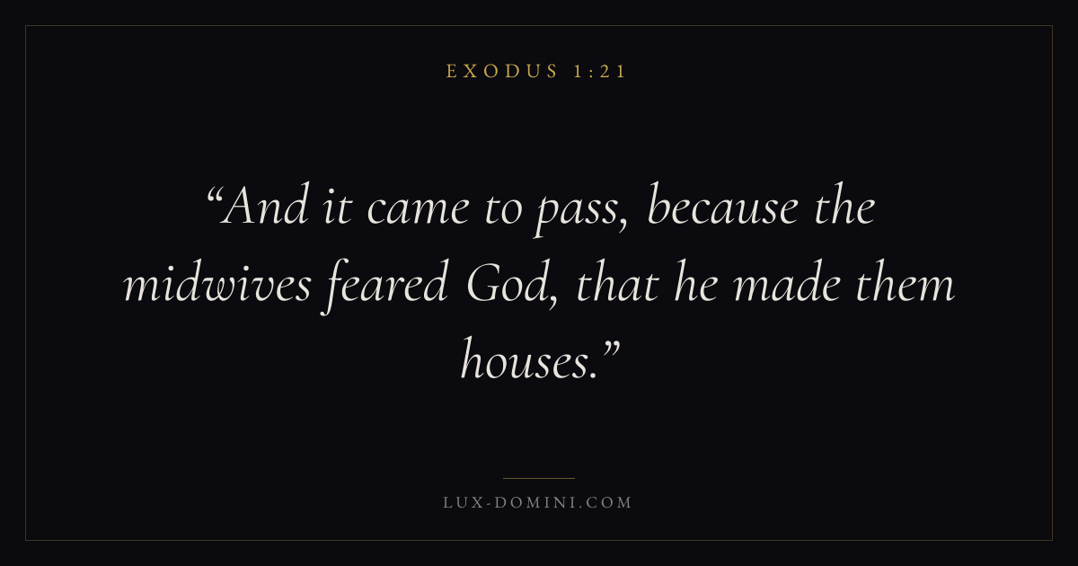 And it came to pass, because the midwives feared God, that he made them houses.