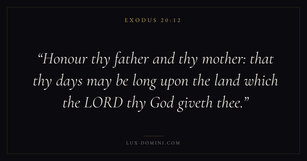 Honour thy father and thy mother: that thy days may be long upon the land which the LORD thy God giveth thee.