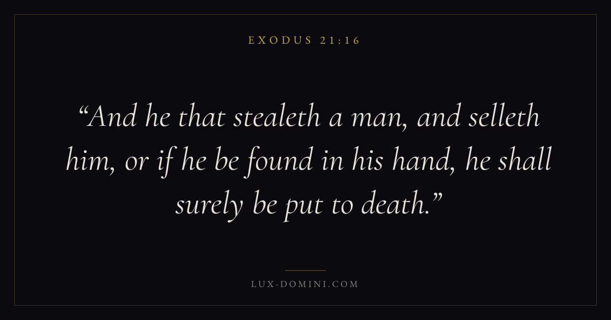And he that stealeth a man, and selleth him, or if he be found in his hand, he shall surely be put to death.