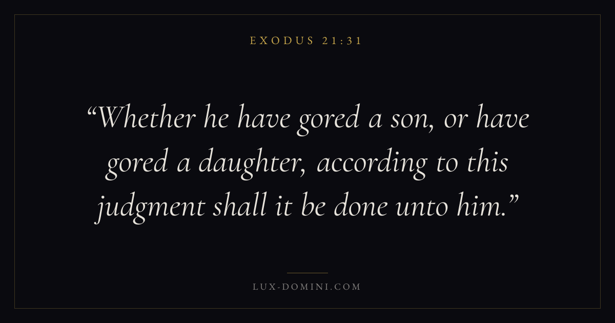 Whether he have gored a son, or have gored a daughter, according to this judgment shall it be done unto him.