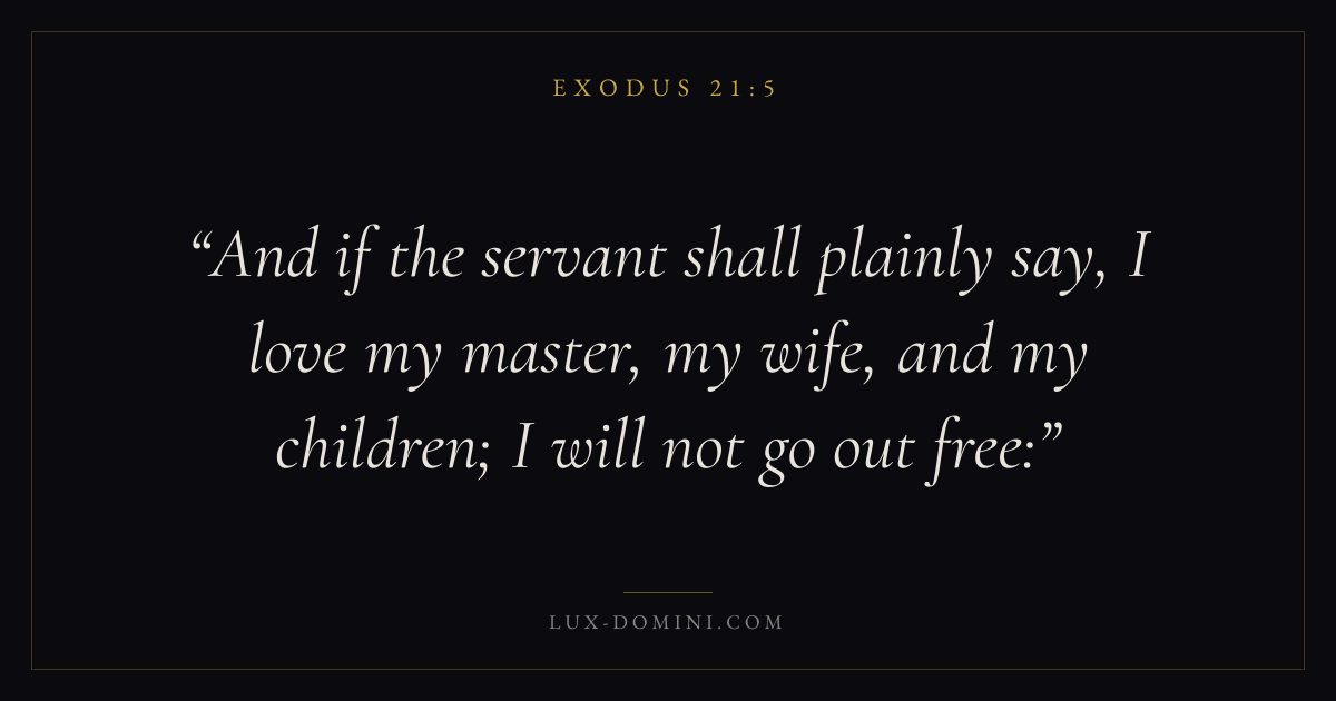 And if the servant shall plainly say, I love my master, my wife, and my children; I will not go out free: