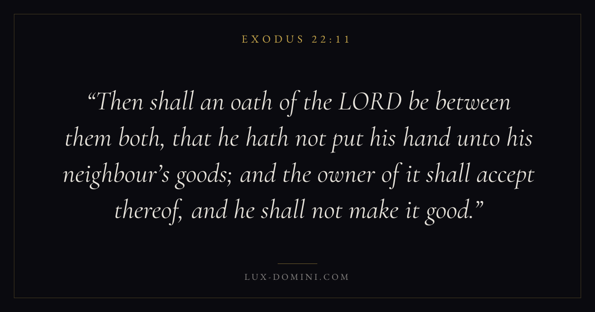 Then shall an oath of the LORD be between them both, that he hath not put his hand unto his neighbour’s goods; and the owner of it shall accept thereof, and he shall not make it good.