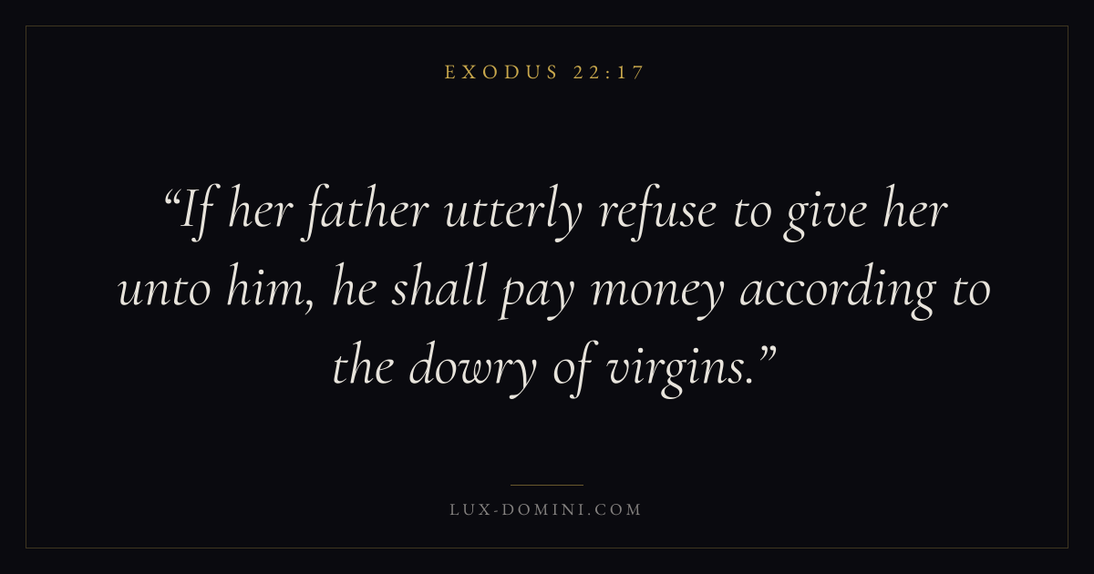 If her father utterly refuse to give her unto him, he shall pay money according to the dowry of virgins.