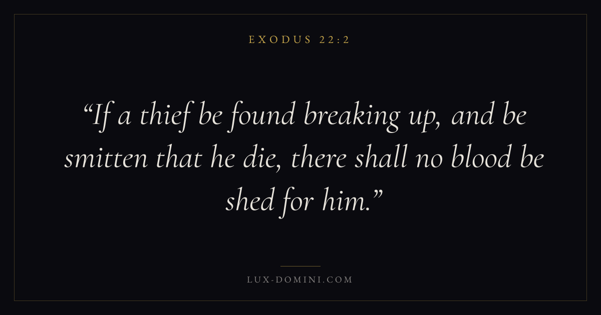 If a thief be found breaking up, and be smitten that he die, there shall no blood be shed for him.