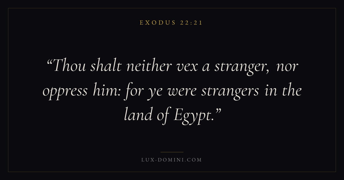 Thou shalt neither vex a stranger, nor oppress him: for ye were strangers in the land of Egypt.