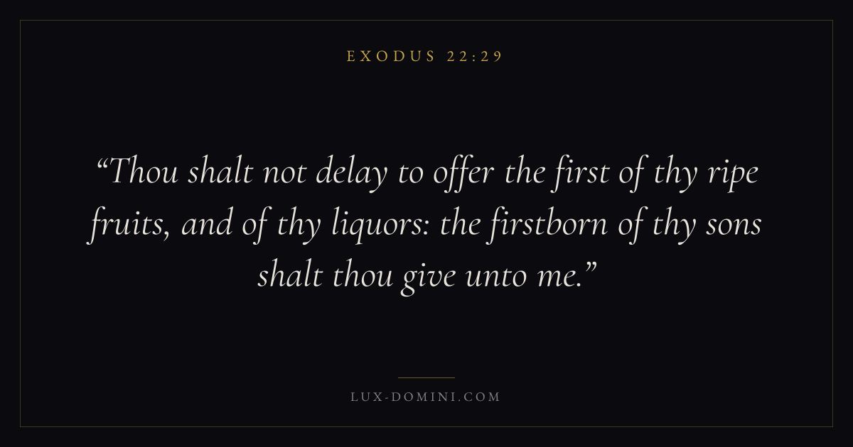 Thou shalt not delay to offer the first of thy ripe fruits, and of thy liquors: the firstborn of thy sons shalt thou give unto me.