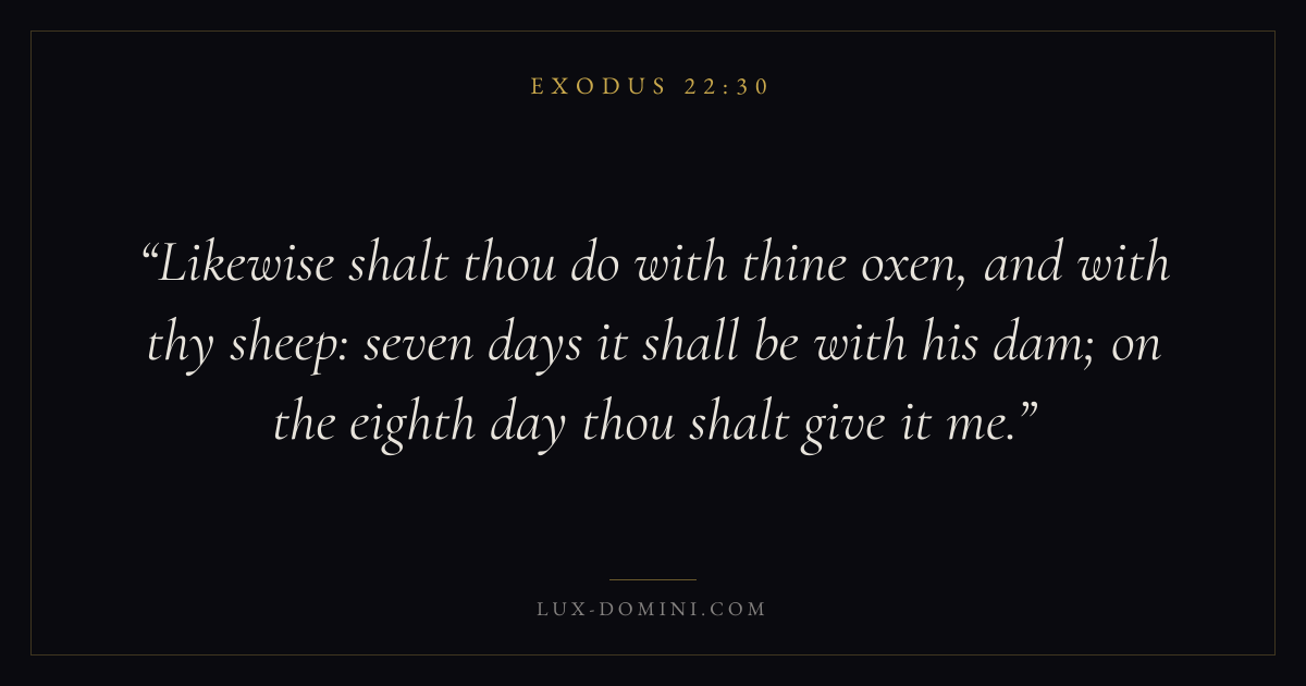 Likewise shalt thou do with thine oxen, and with thy sheep: seven days it shall be with his dam; on the eighth day thou shalt give it me.