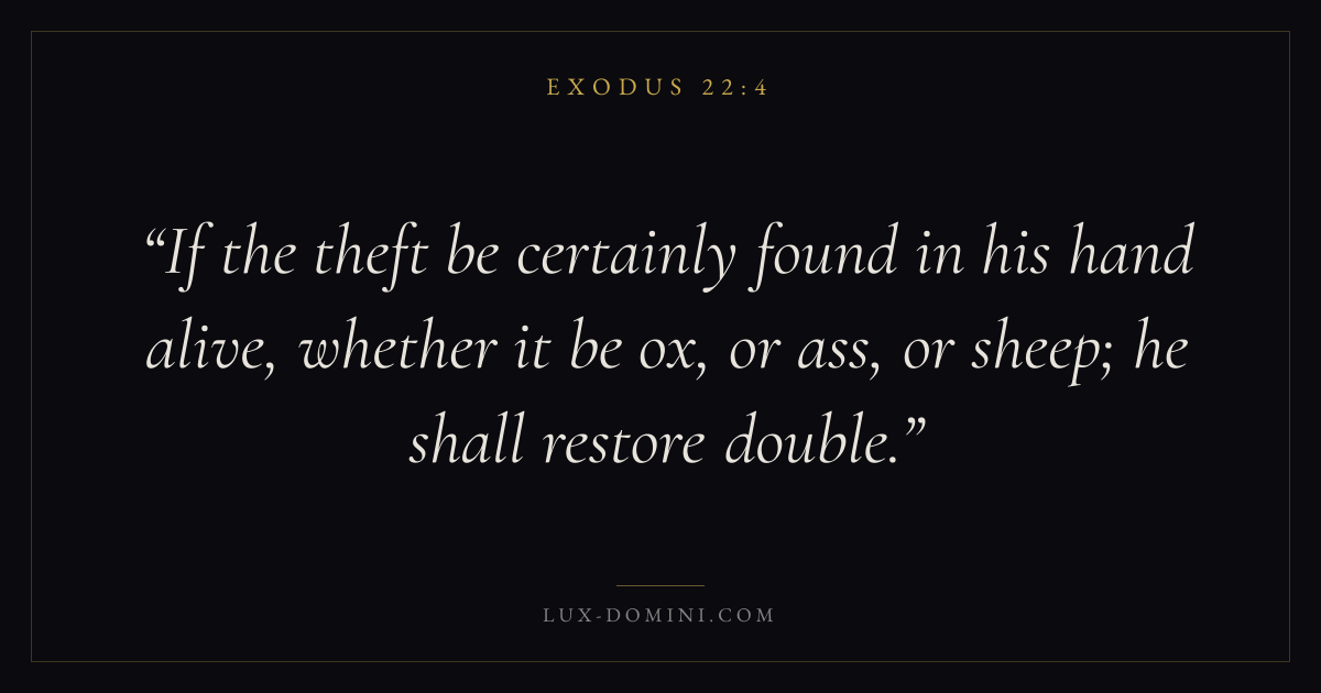 If the theft be certainly found in his hand alive, whether it be ox, or ass, or sheep; he shall restore double.