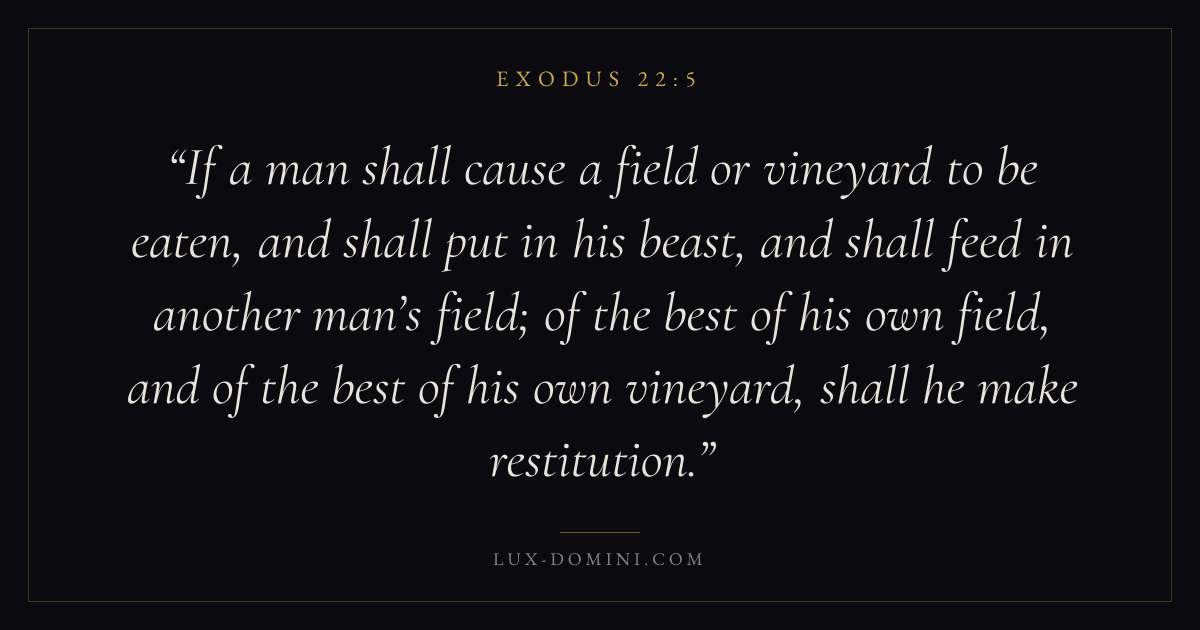 If a man shall cause a field or vineyard to be eaten, and shall put in his beast, and shall feed in another man’s field; of the best of his own field, and of the best of his own vineyard, shall he make restitution.
