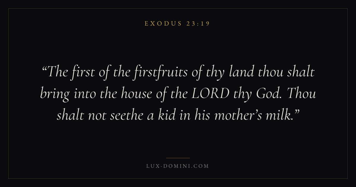 The first of the firstfruits of thy land thou shalt bring into the house of the LORD thy God. Thou shalt not seethe a kid in his mother’s milk.