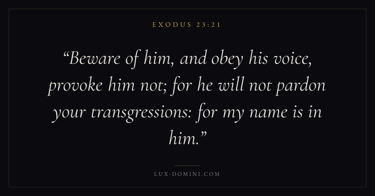 Beware of him, and obey his voice, provoke him not; for he will not pardon your transgressions: for my name is in him.
