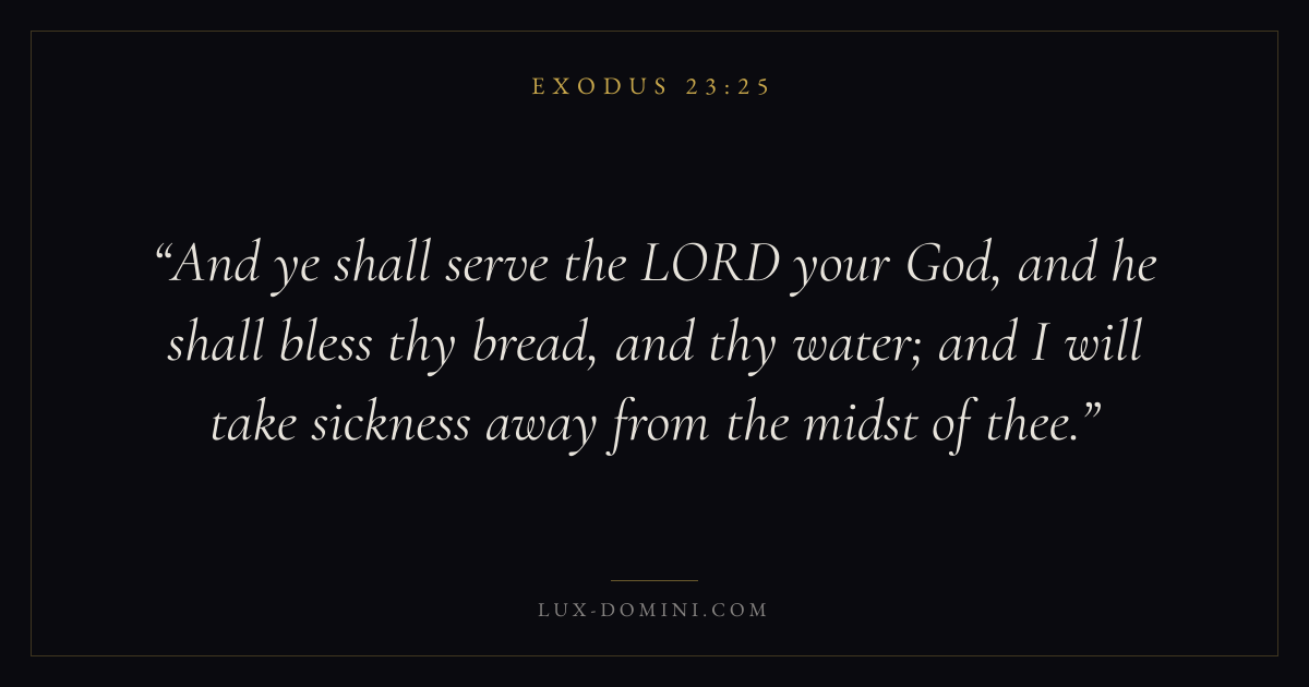 And ye shall serve the LORD your God, and he shall bless thy bread, and thy water; and I will take sickness away from the midst of thee.