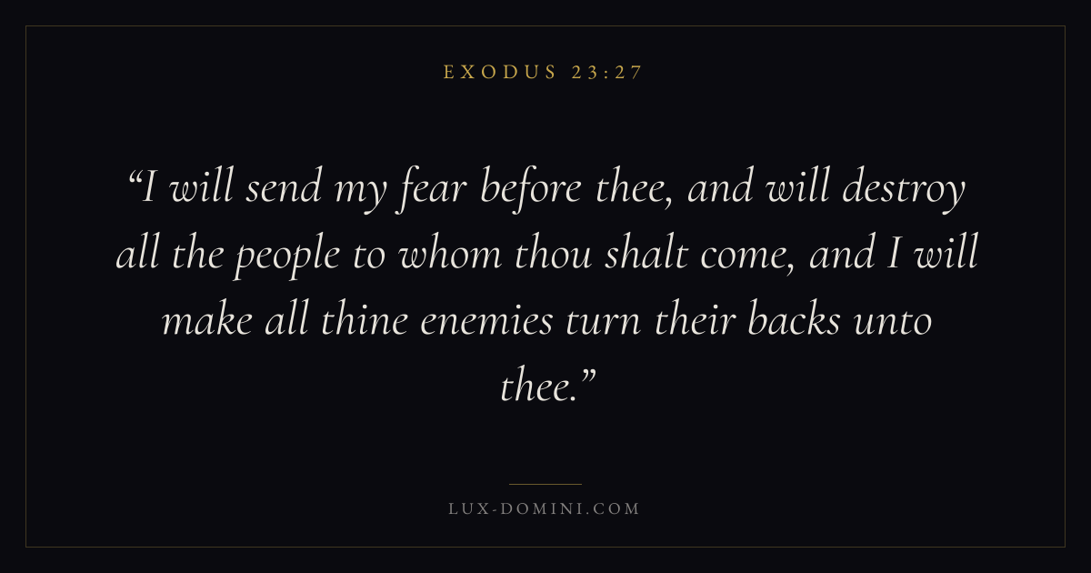 I will send my fear before thee, and will destroy all the people to whom thou shalt come, and I will make all thine enemies turn their backs unto thee.