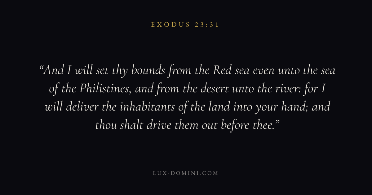 And I will set thy bounds from the Red sea even unto the sea of the Philistines, and from the desert unto the river: for I will deliver the inhabitants of the land into your hand; and thou shalt drive them out before thee.