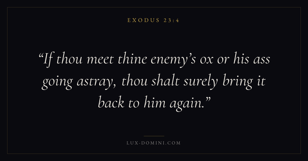 If thou meet thine enemy’s ox or his ass going astray, thou shalt surely bring it back to him again.