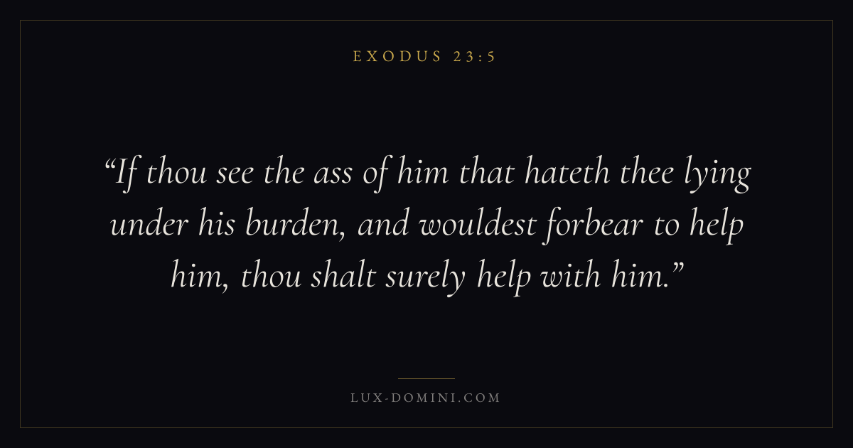 If thou see the ass of him that hateth thee lying under his burden, and wouldest forbear to help him, thou shalt surely help with him.