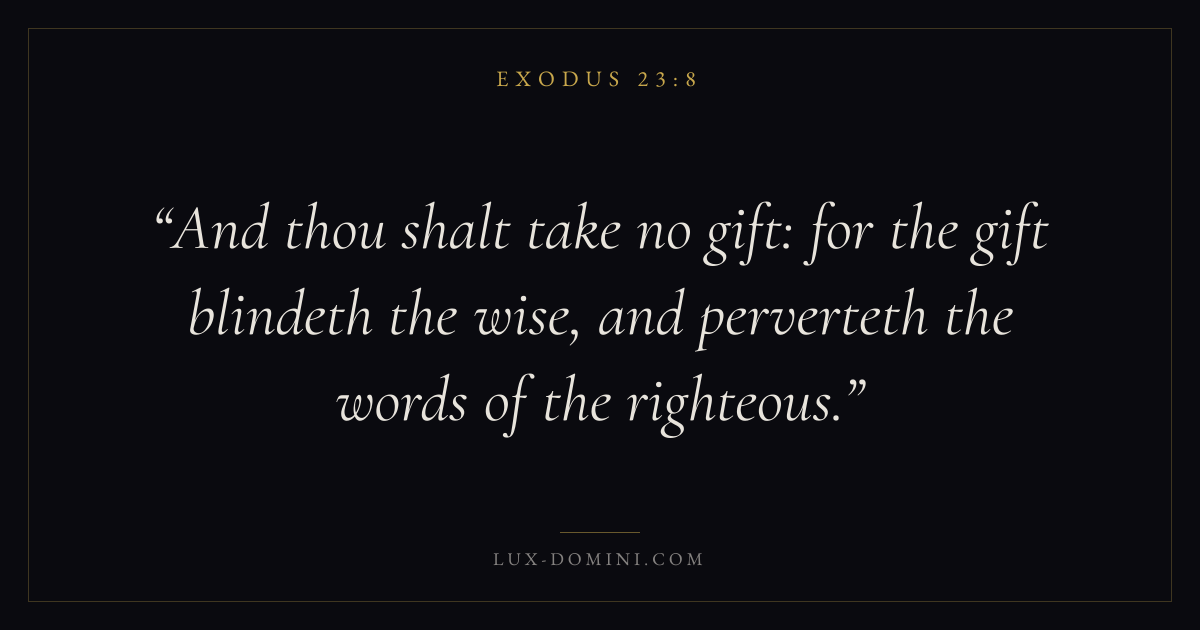 And thou shalt take no gift: for the gift blindeth the wise, and perverteth the words of the righteous.