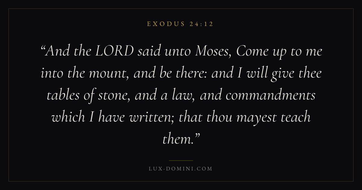 And the LORD said unto Moses, Come up to me into the mount, and be there: and I will give thee tables of stone, and a law, and commandments which I have written; that thou mayest teach them.