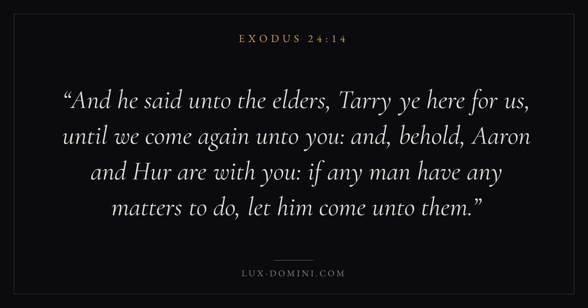 And he said unto the elders, Tarry ye here for us, until we come again unto you: and, behold, Aaron and Hur are with you: if any man have any matters to do, let him come unto them.