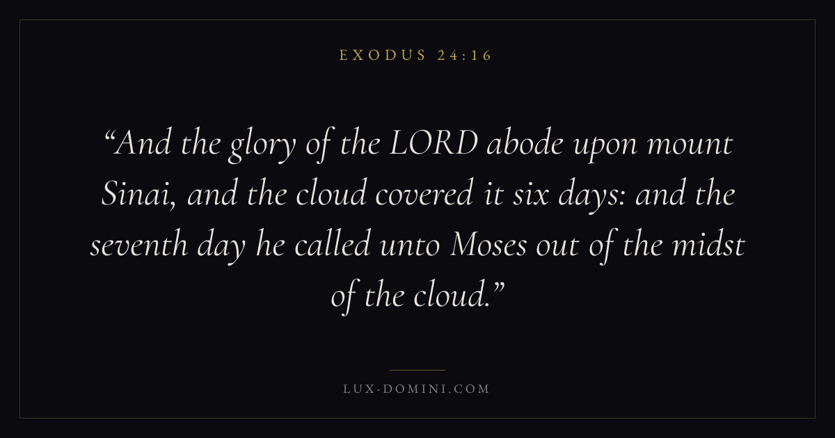 And the glory of the LORD abode upon mount Sinai, and the cloud covered it six days: and the seventh day he called unto Moses out of the midst of the cloud.