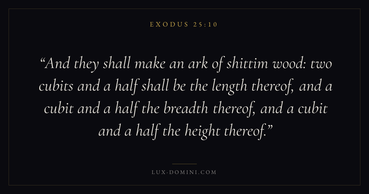 And they shall make an ark of shittim wood: two cubits and a half shall be the length thereof, and a cubit and a half the breadth thereof, and a cubit and a half the height thereof.