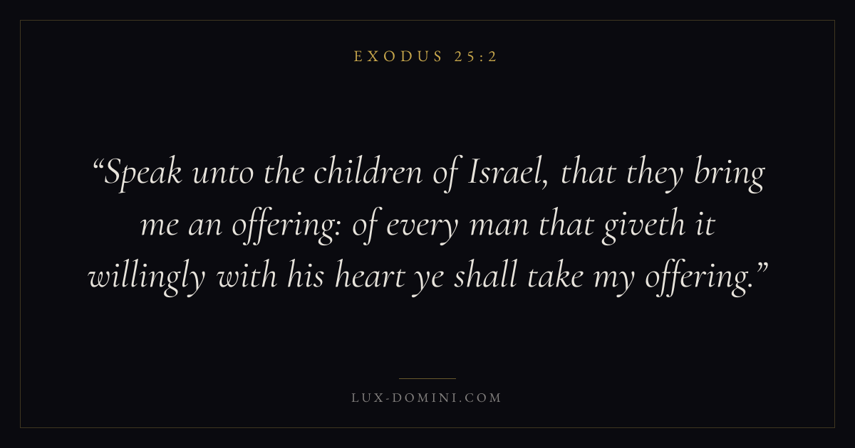 Speak unto the children of Israel, that they bring me an offering: of every man that giveth it willingly with his heart ye shall take my offering.
