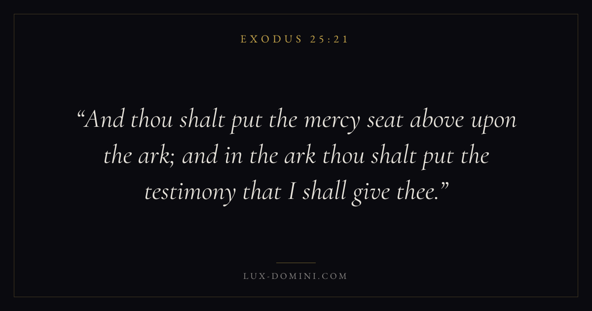 And thou shalt put the mercy seat above upon the ark; and in the ark thou shalt put the testimony that I shall give thee.