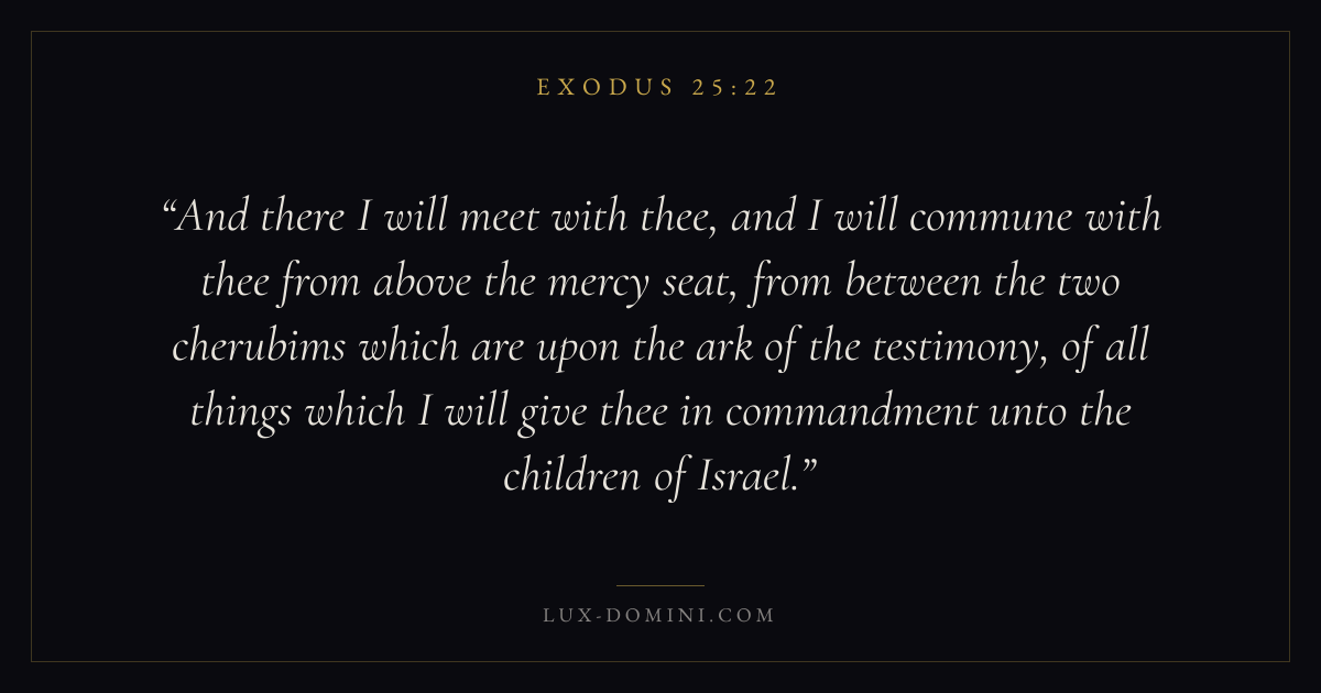 And there I will meet with thee, and I will commune with thee from above the mercy seat, from between the two cherubims which are upon the ark of the testimony, of all things which I will give thee in commandment unto the children of Israel.