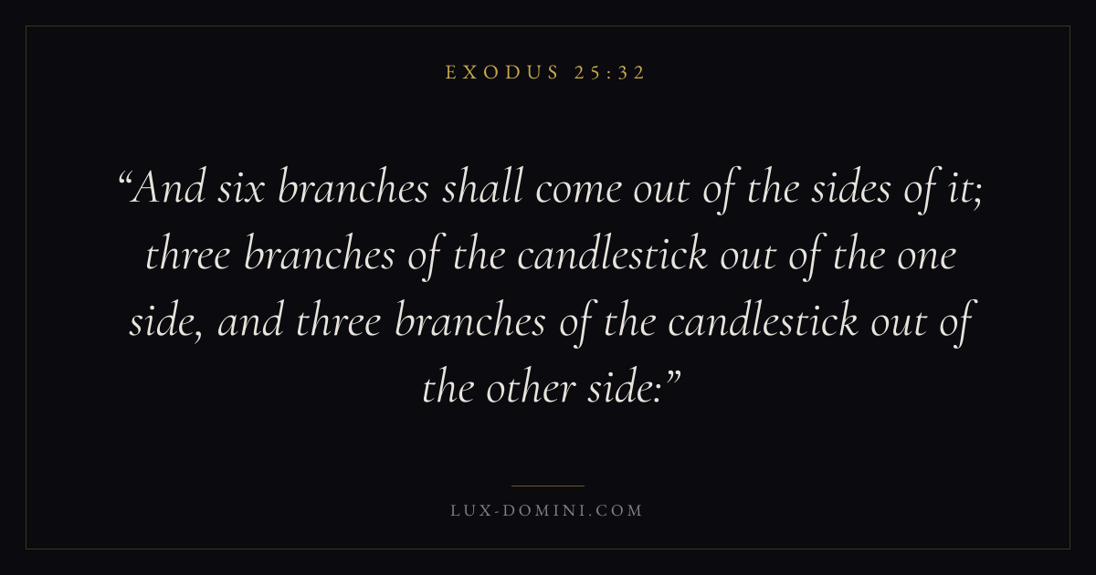 And six branches shall come out of the sides of it; three branches of the candlestick out of the one side, and three branches of the candlestick out of the other side: