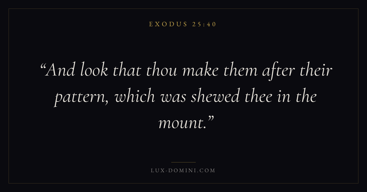 And look that thou make them after their pattern, which was shewed thee in the mount.