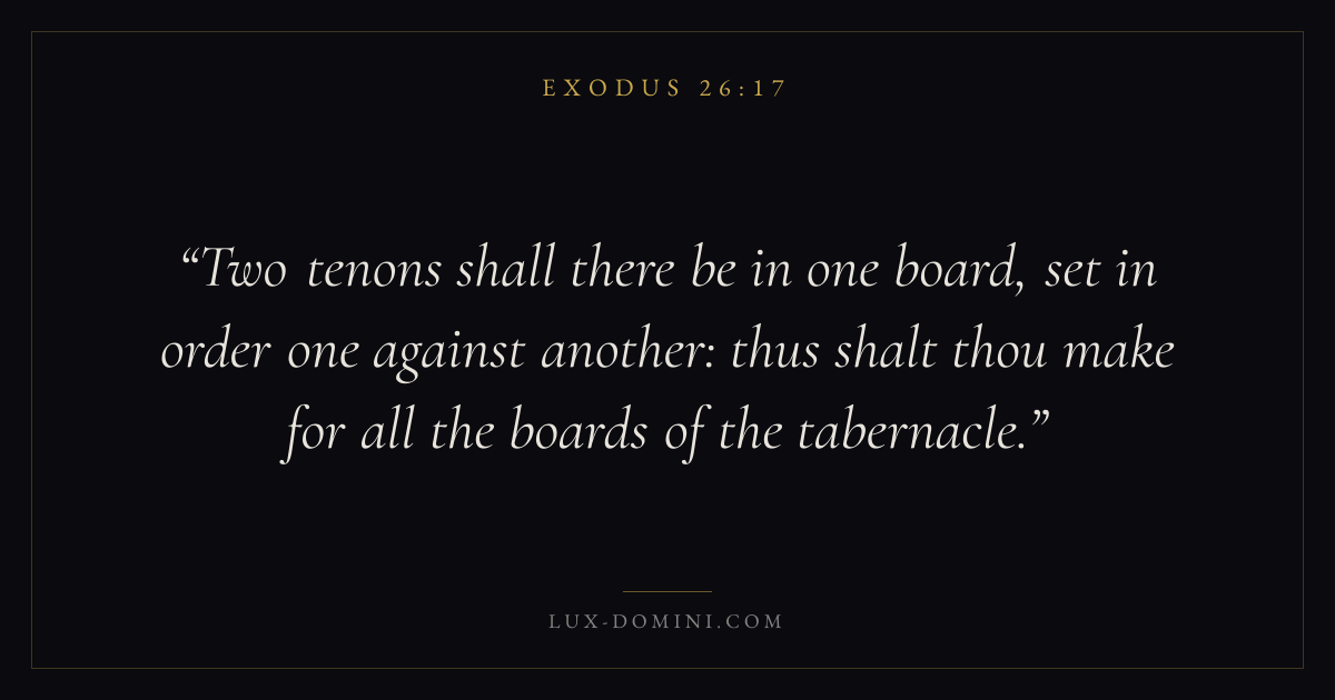 Two tenons shall there be in one board, set in order one against another: thus shalt thou make for all the boards of the tabernacle.