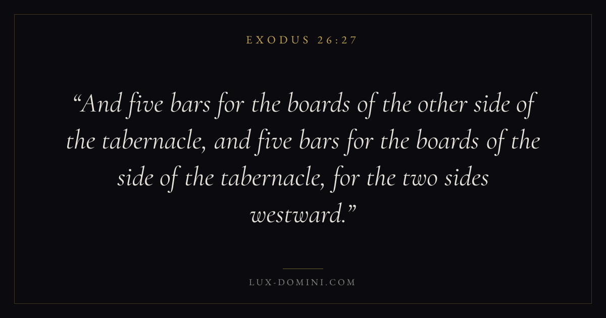 And five bars for the boards of the other side of the tabernacle, and five bars for the boards of the side of the tabernacle, for the two sides westward.