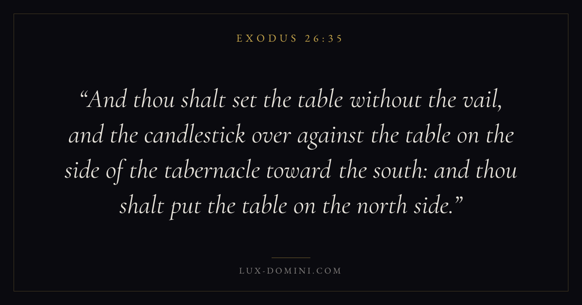 And thou shalt set the table without the vail, and the candlestick over against the table on the side of the tabernacle toward the south: and thou shalt put the table on the north side.