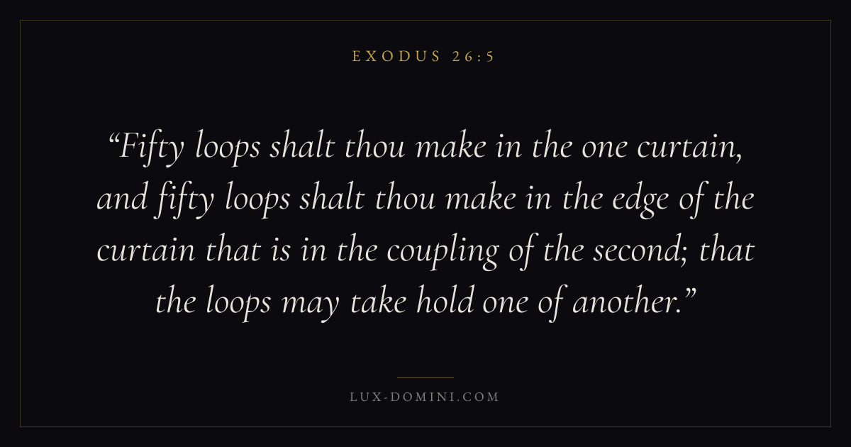 Fifty loops shalt thou make in the one curtain, and fifty loops shalt thou make in the edge of the curtain that is in the coupling of the second; that the loops may take hold one of another.
