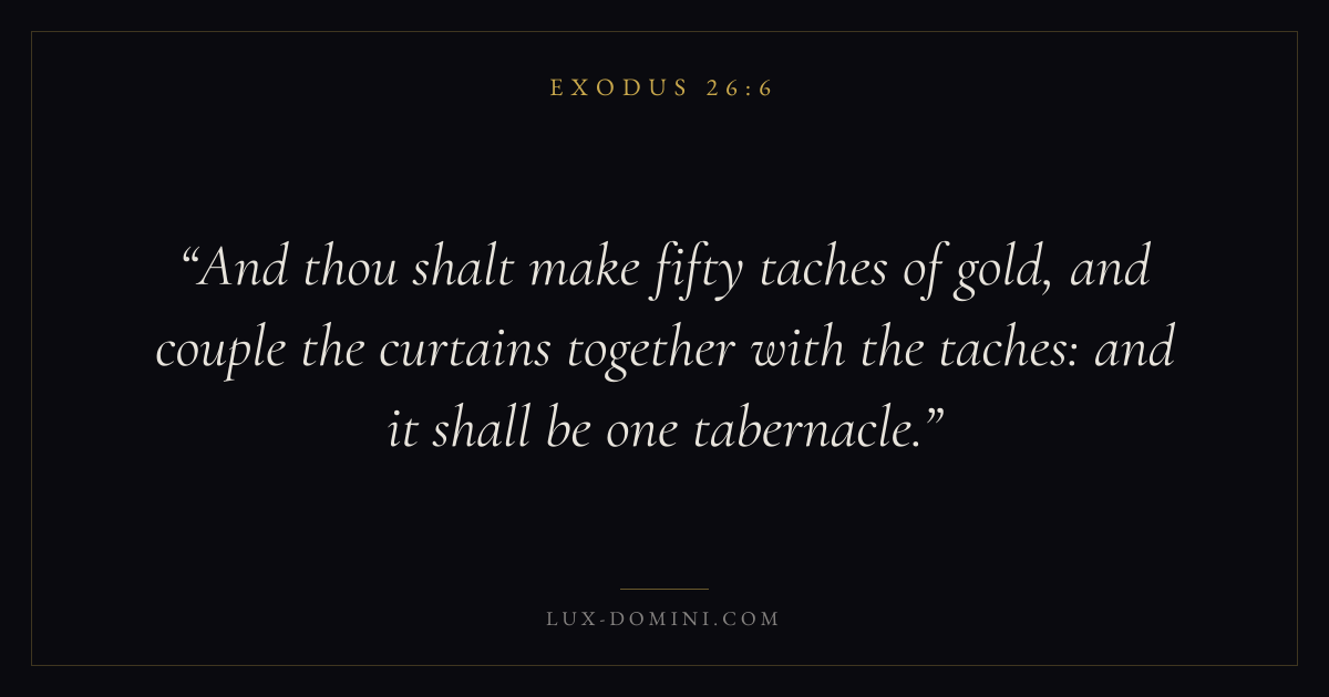And thou shalt make fifty taches of gold, and couple the curtains together with the taches: and it shall be one tabernacle.