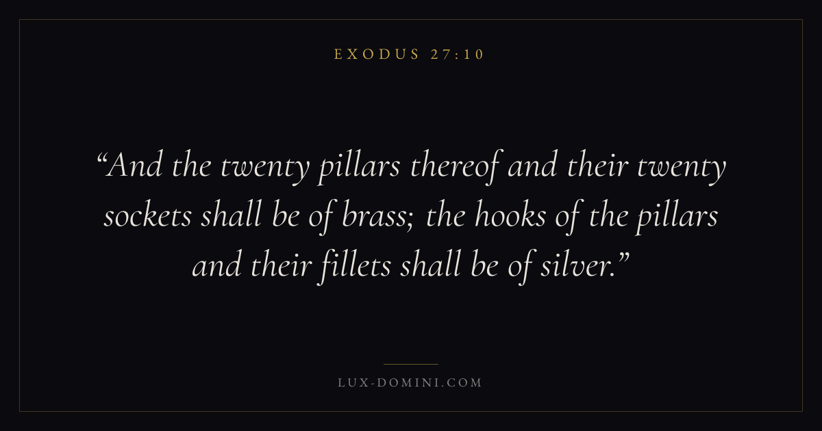 And the twenty pillars thereof and their twenty sockets shall be of brass; the hooks of the pillars and their fillets shall be of silver.