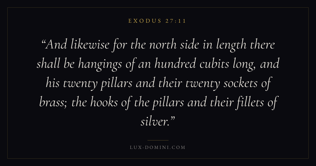 And likewise for the north side in length there shall be hangings of an hundred cubits long, and his twenty pillars and their twenty sockets of brass; the hooks of the pillars and their fillets of silver.