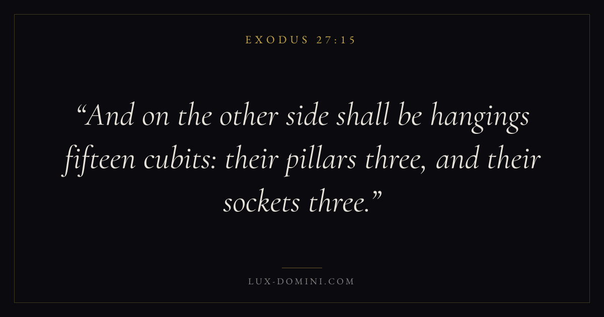And on the other side shall be hangings fifteen cubits: their pillars three, and their sockets three.
