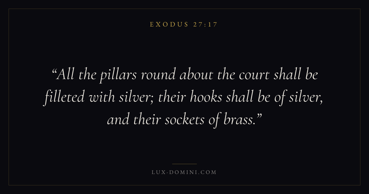 All the pillars round about the court shall be filleted with silver; their hooks shall be of silver, and their sockets of brass.