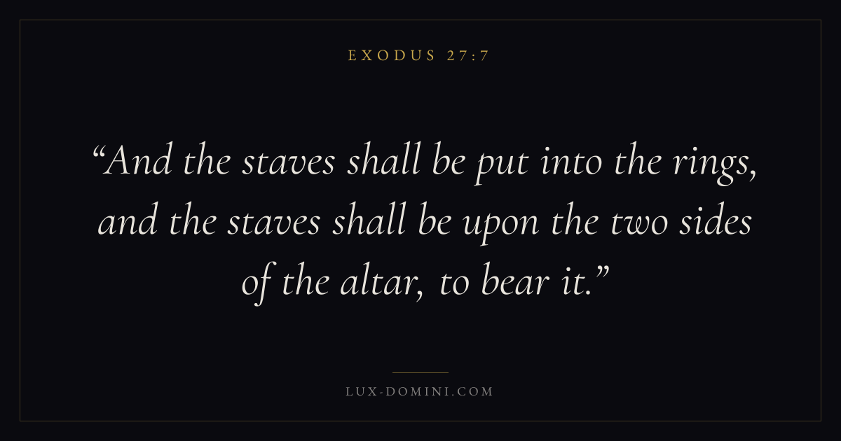 And the staves shall be put into the rings, and the staves shall be upon the two sides of the altar, to bear it.