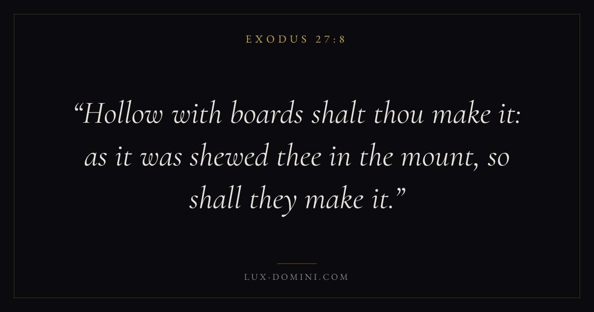 Hollow with boards shalt thou make it: as it was shewed thee in the mount, so shall they make it.