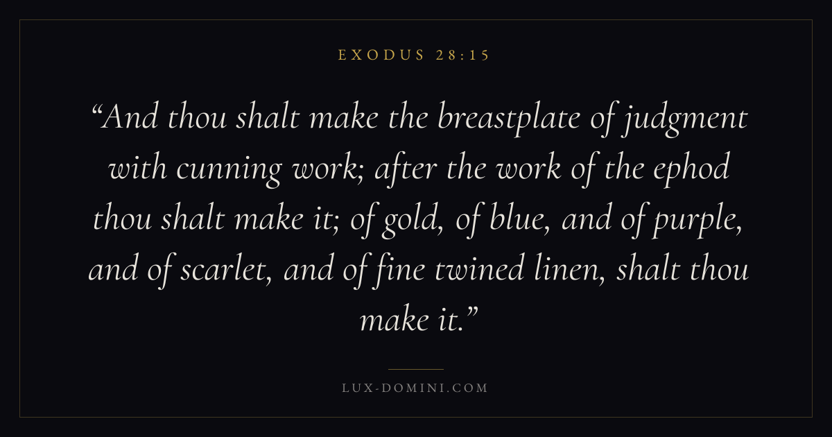 And thou shalt make the breastplate of judgment with cunning work; after the work of the ephod thou shalt make it; of gold, of blue, and of purple, and of scarlet, and of fine twined linen, shalt thou make it.