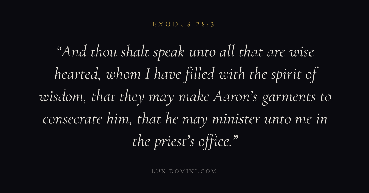 And thou shalt speak unto all that are wise hearted, whom I have filled with the spirit of wisdom, that they may make Aaron’s garments to consecrate him, that he may minister unto me in the priest’s office.