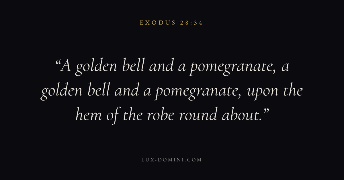 A golden bell and a pomegranate, a golden bell and a pomegranate, upon the hem of the robe round about.