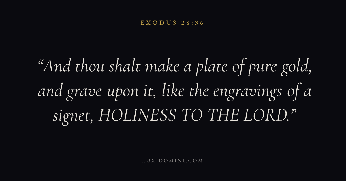 And thou shalt make a plate of pure gold, and grave upon it, like the engravings of a signet, HOLINESS TO THE LORD.