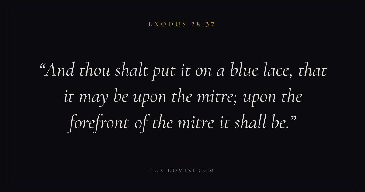 And thou shalt put it on a blue lace, that it may be upon the mitre; upon the forefront of the mitre it shall be.